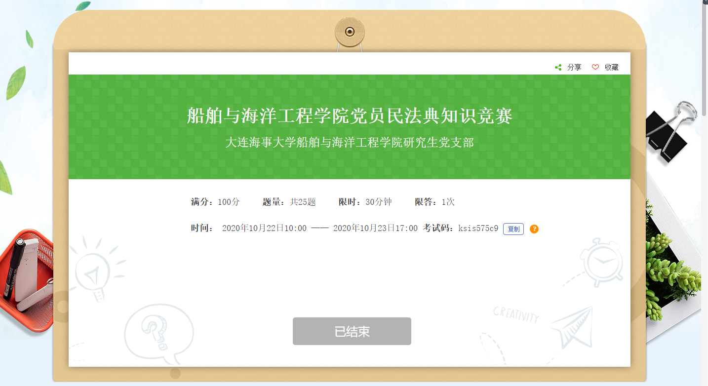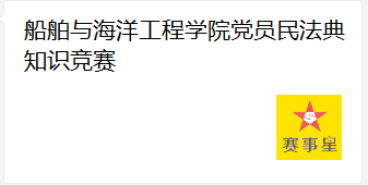 为了加强思想理论学习,深化支部创新建设,船舶与海洋工程学院研究生党支部在2020年10月22日到10月23日举行了线上民法典知识竞赛。