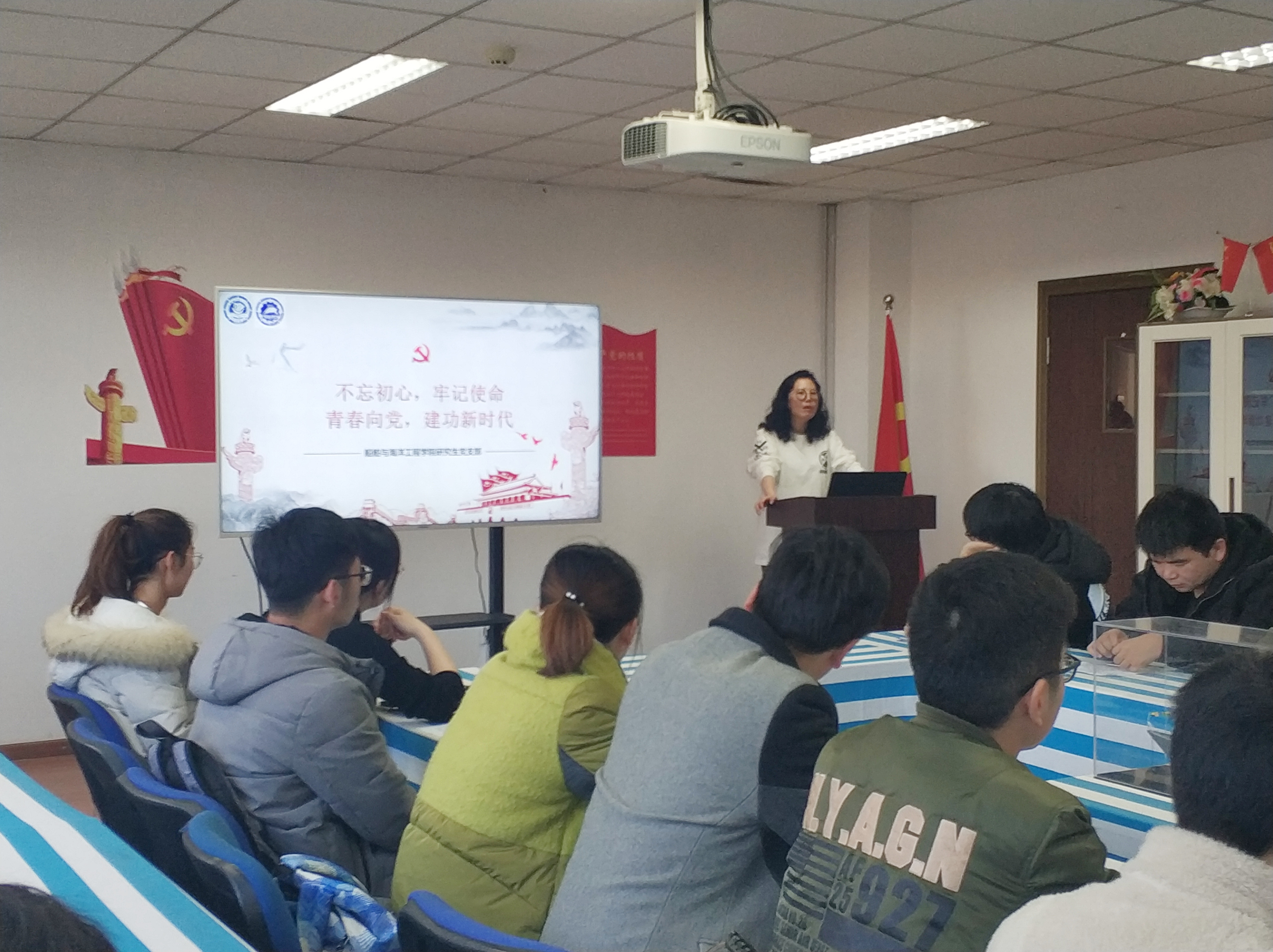 研究生党支部书记杜雨珊为全院研究生党员做了“不忘初心、牢记使命▪青春向党 建功新时代”的主题报告。