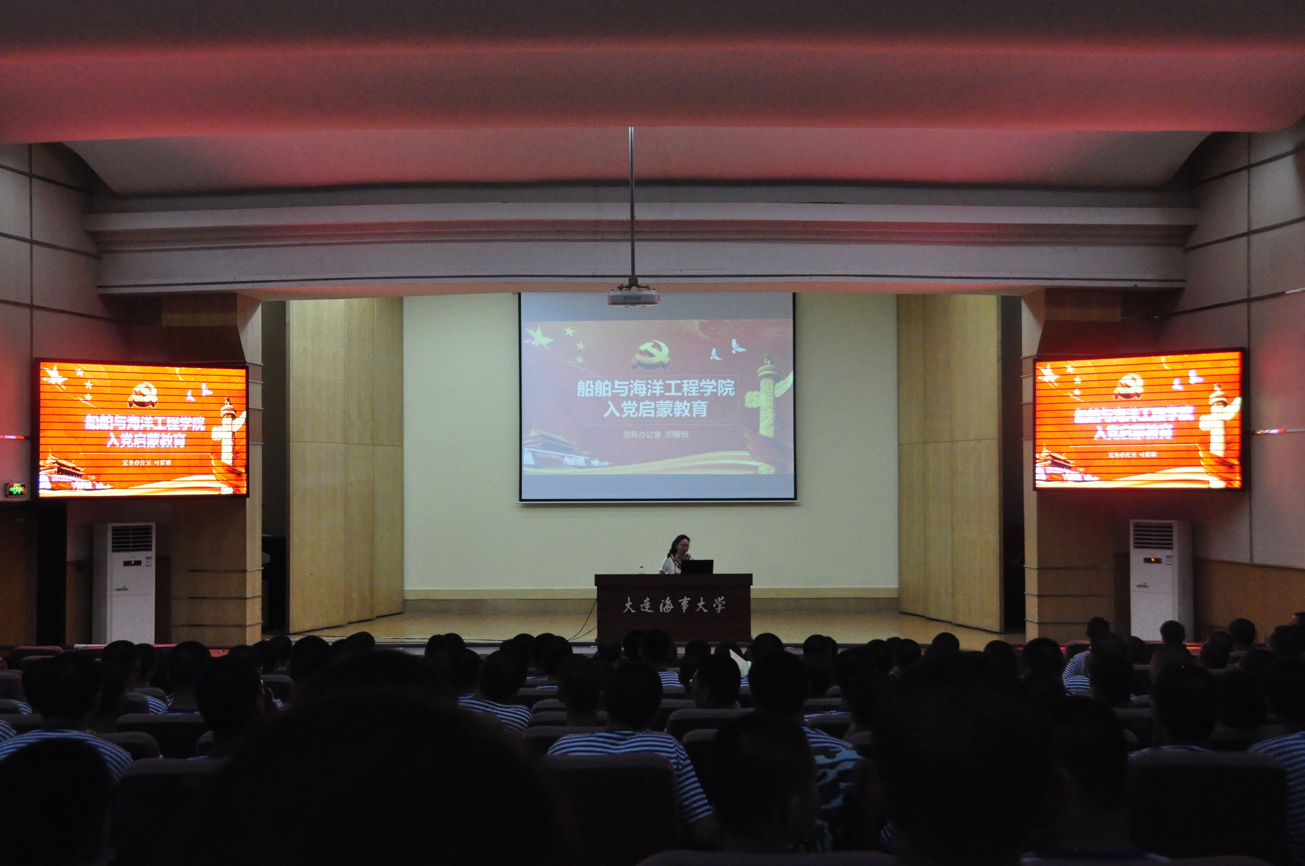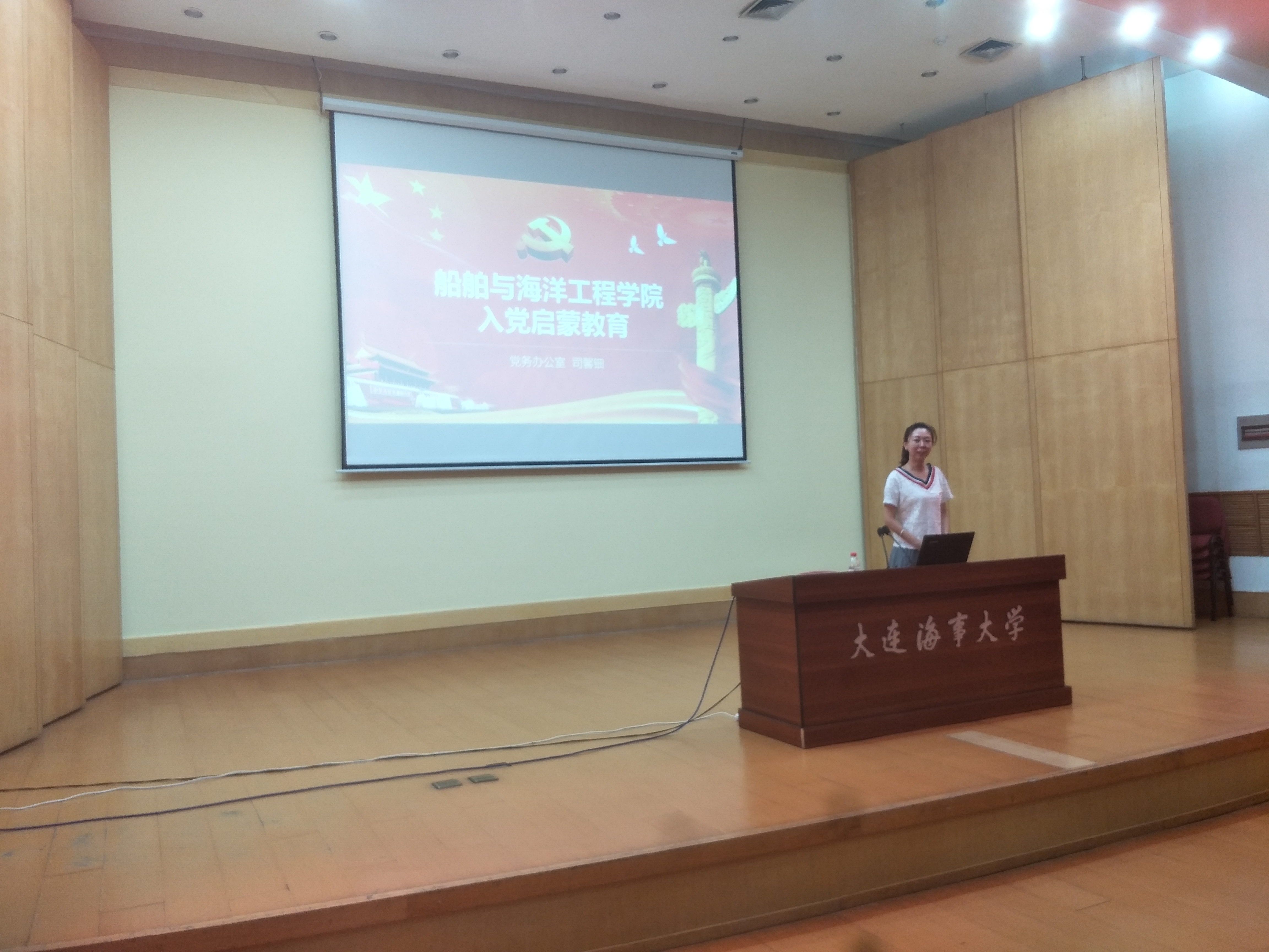 在中远报告厅举办2018级新生入党启蒙教育专题讲座,本次讲座由学院党务办公室主任司馨钿主讲。