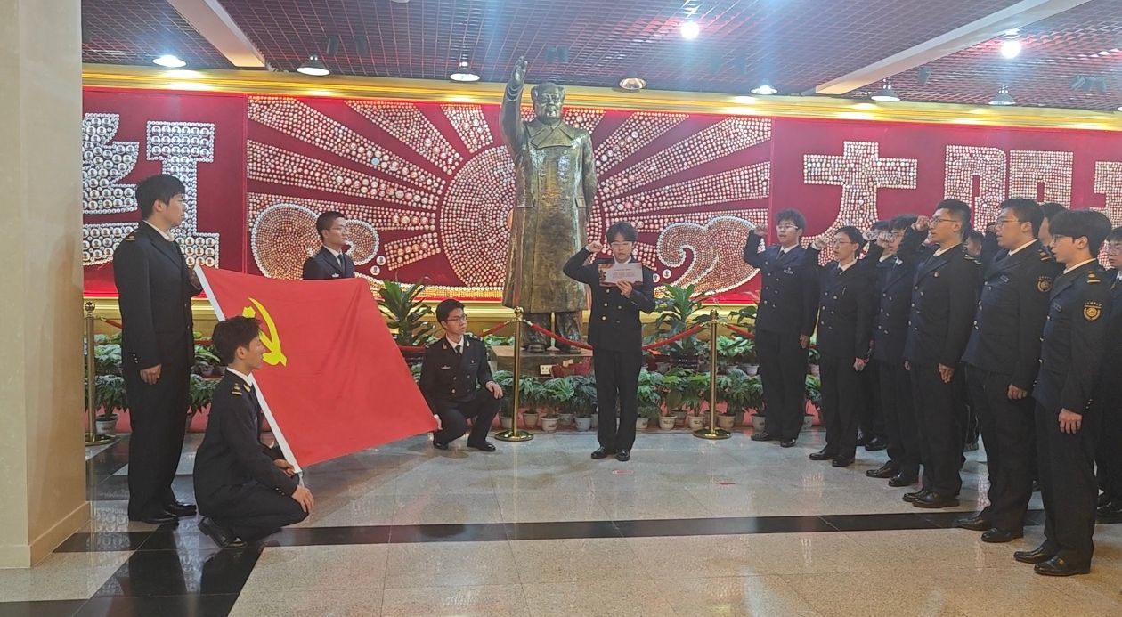随后,全体师生党员来到毛泽东同志塑像前,举行了重温入党誓词活动,“我志愿加入中国共产党,拥护党的纲领,遵守党的章程……”铿锵有力的誓言在馆内回荡,表达了师生党员们对党的无限忠诚和为共产主义事业奋斗终身的坚定决心�