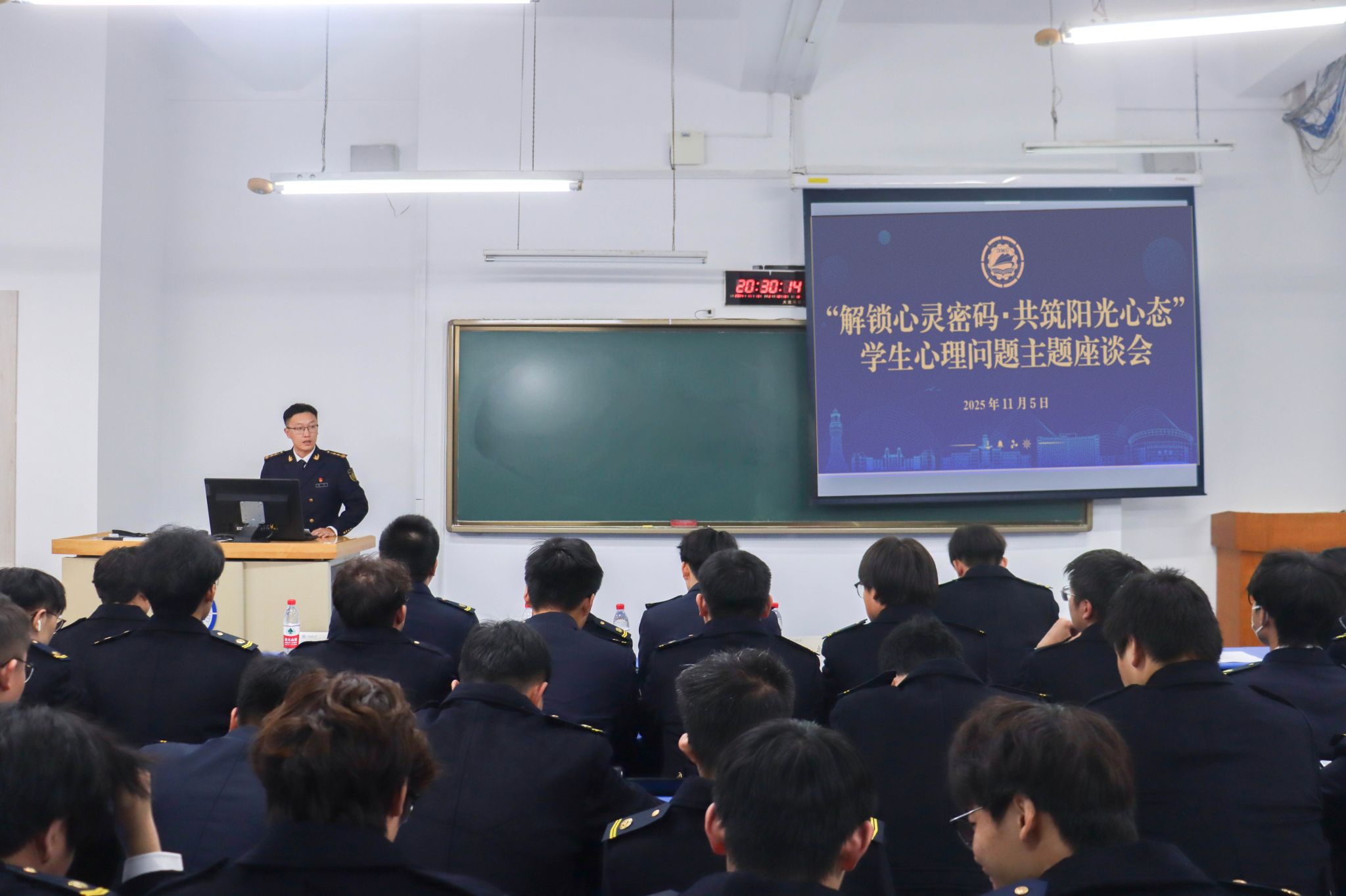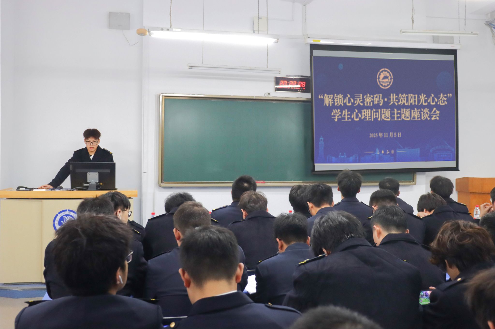 为引导学生正视心理困惑,提升情绪调节能力,筑牢心理健康防线,营造互助包容的校园氛围�2025�11�5日晚,船舶与海洋工程学院 2022 中队精心组织� �解锁心灵密码�共筑阳光心态� 学生心理问题主题座谈会。本次座谈会由中队辅导员薛航主持,中队心理委员崔伟帅参与,与在场 100 余名学生展开深度交流�