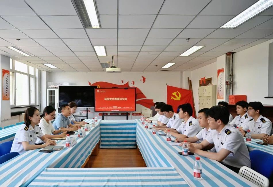 骊歌轻响,扬帆在即。为共叙师生情谊,聆听成长心声,勉励船海学子承载母校厚望,勇担时代重任�6�11�,船舶与海洋工程学院开�2025 届毕业生“楫桨逐浪 共话深蓝”座谈会。学院党委书记于丽莎、党委副书记、副院长王文伟、团委书记王宏诗、毕业班指导员曲宸阳�2025届毕业生代表出席会议。座谈会由王文伟主持�
