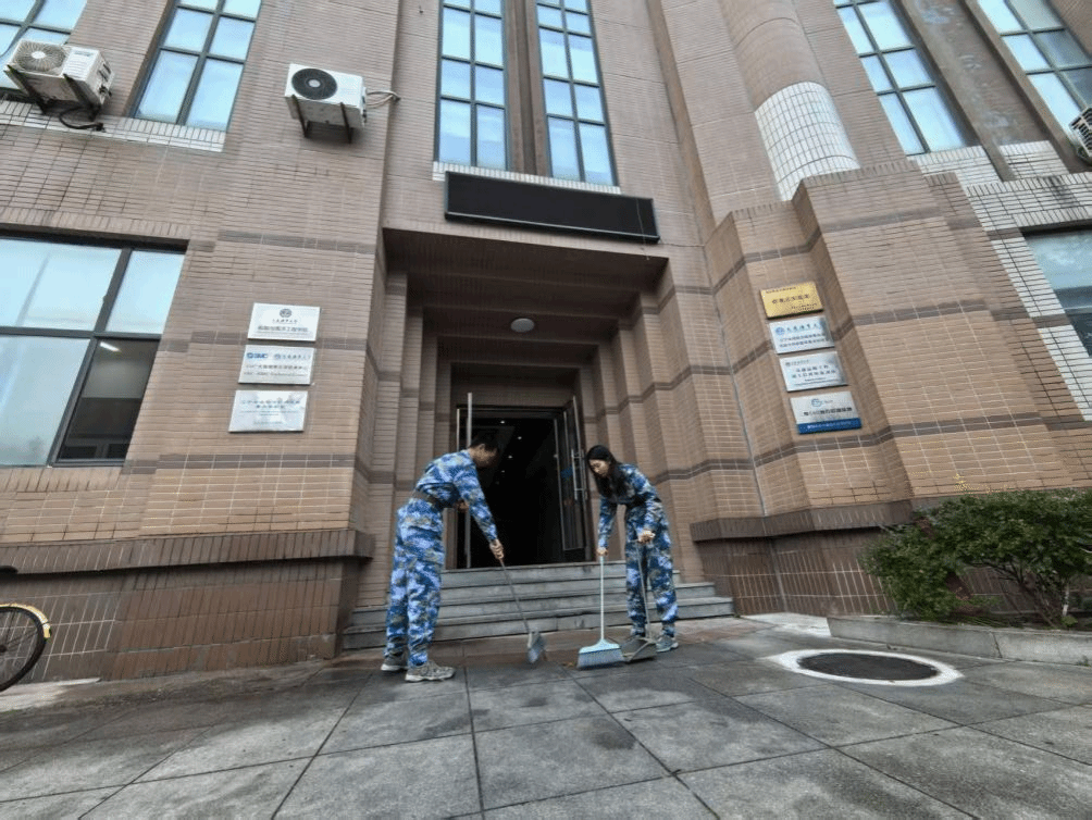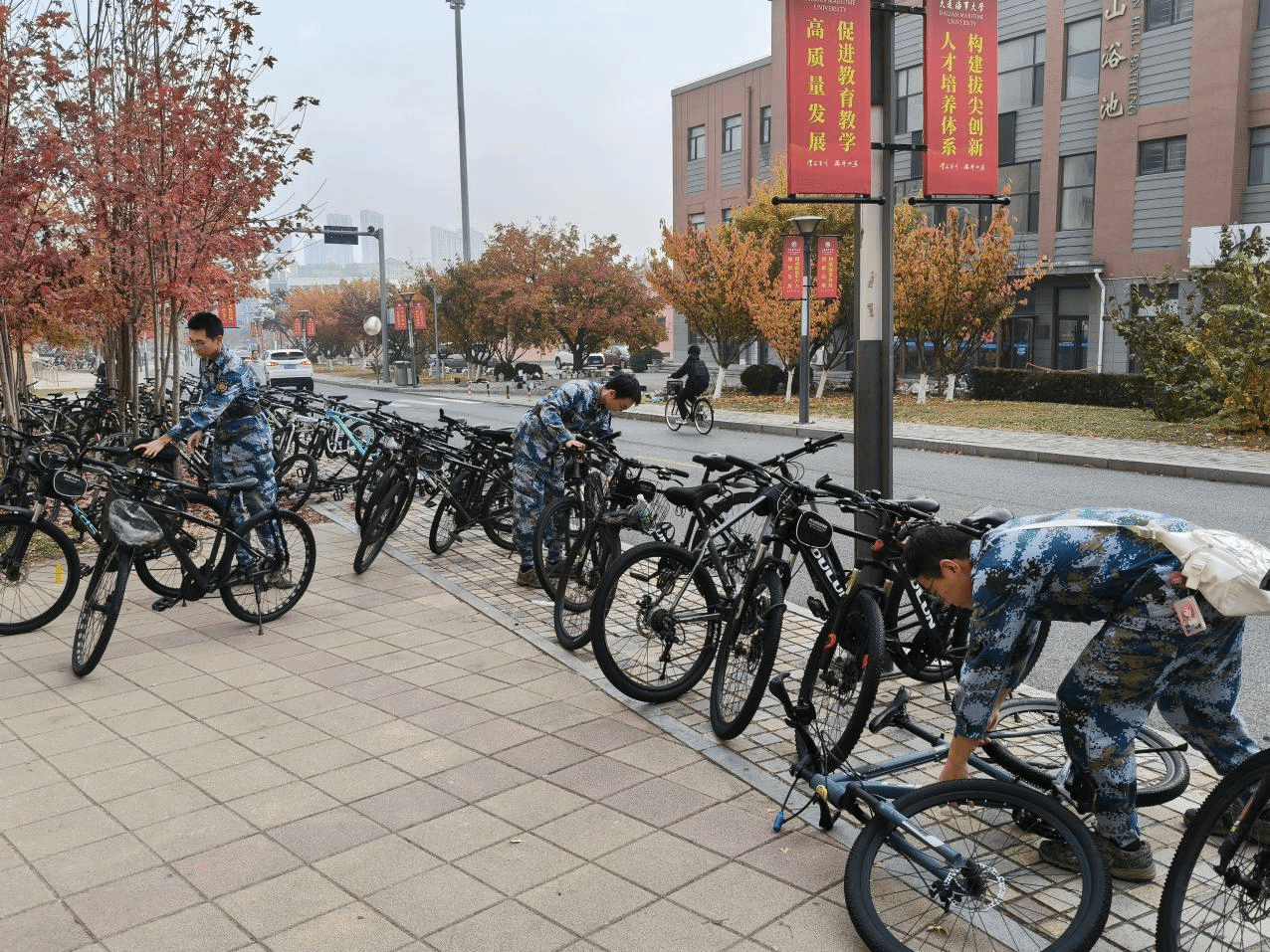 在公寓周边,同学�认真擦洗护栏标识。此外,同学们还自发组织分工将散乱停放的自行车归位整齐,使校园环境更加规范有序。整个过程组织高效,展现了船海学子良好的精神风貌与团队协作能力�